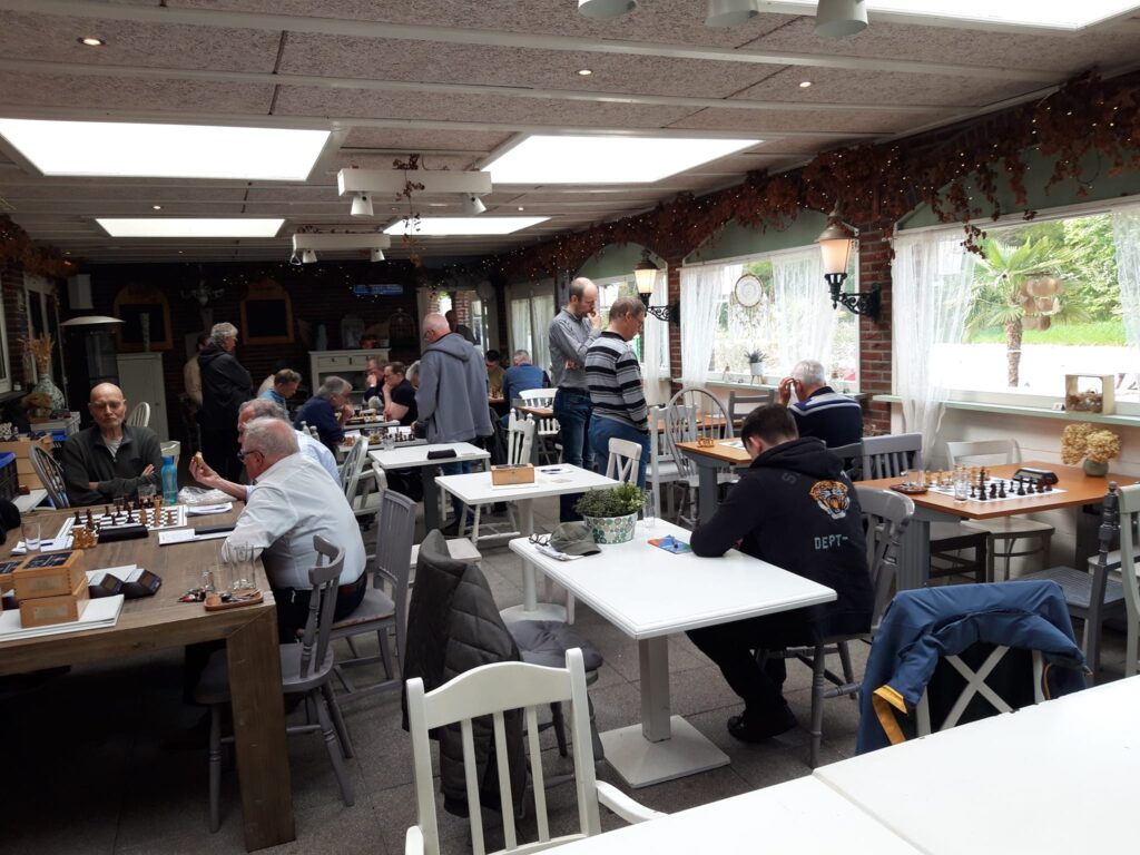 We speelden uit tegen Schaesberg 1, koploper in onze klasse. Gelukkig zegt zoiets dit jaar weinig. Iedereen kan van iedereen winnen, dus we waren verre van kansloos. Sterker nog, op basis van de ratings waren we zondag licht favoriet. Nadat we allemaal een parkeerplek hadden gevonden en naar de speelzaal waren gewandeld (dit keer Brasserie Jolo’s en niet het vertrouwde Streeperkruis), konden we aan de slag.