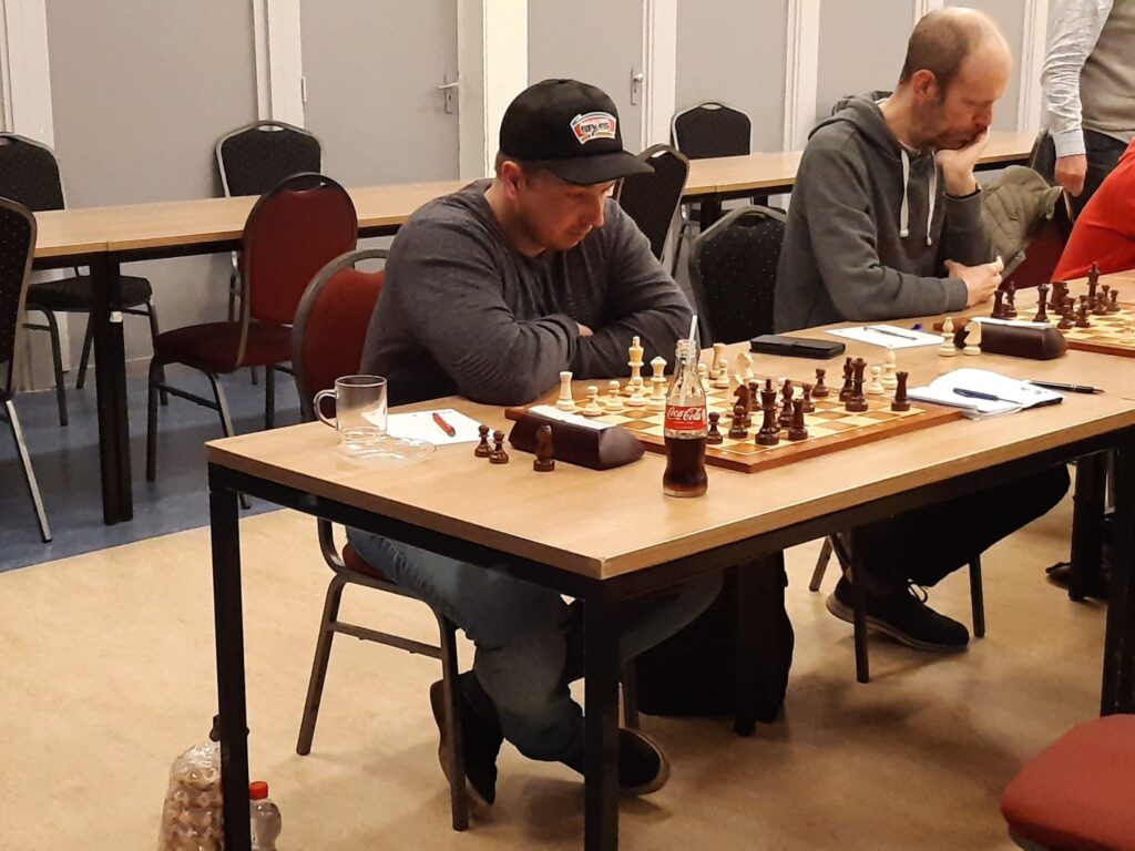 Ik had vanuit de opening steeds het beste van het spel en op een zeker moment een dwangpositie met alleen nog dames en torens op het bord. Dit speelde ik iets te gehaast waardoor er een eindspel dreigde van dame tegen twee torens. Daar had ik geen zin in en ik koos voor het pionneneindspel, mede met het oog op de beperkte bedenktijd van mijn tegenstander. Dit was objectief remise, maar -zoals vaak bij pionneneindspelen- tricky voor beide kanten. Mijn tegenstander koos het verkeerde pad en miscalculeerde het beslissende tempo. Dat lag aan mijn kant en hij gaf bij zet 41 gedesillusioneerd op. Tevreden kon ik mijn door Sander uitgedeelde suikerwafel uitpakken.