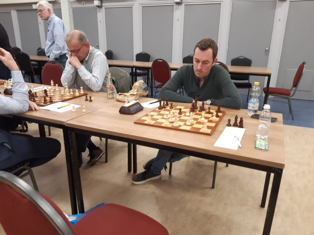 Niet veel later bracht Ties de stand op 1-1 in een slim gepeelde partij. Hij liet een ogenschijnlijk gunstige slagwisseling toe, maar stelde zijn tegenstander vervolgens voor een onoplosbaar probleem dat een stuk kostte. Twee zetten later herhaalde Ties deze truc zowaar en zo was reeds na 23 zetten alles voorbij. Hiermee kandideerde Ties zich voor de MOTM-beker, mede omdat hij topscorer is van het team.