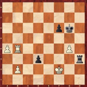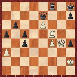Na 43…Rxf5 44. Qxf5 Kg7 staat zwart veilig en kan beginnen met zijn eigen pionnen te laten lopen. ½ – ½