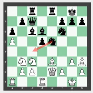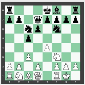 Met die ervaring had ik de volgende ochtend gezocht naar alternatieven. Een optie voor wit is om die witte loper al vroeg te ruilen (e4 c5 2. Nf3 d6 3. Bb5+ Ld7 4. Lxd7). Ik meende me te herinneren dat clubgenoot Sander Bachaus dat ook doet. En in die oriëntatie stuitte ik op een variant waarin wit na ruil van de witte lopers in bijgaande stand met 7.d4 een pionoffer brengt en goed spel krijgt.  En tot mijn verrassing en vreugde speelde mijn tegenstander (Albert Dekker) Siciliaans met de bewuste zetvolgorde (1…c5, en 2…d6), waarin ik over kon gaan tot die ruil.