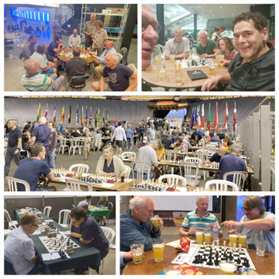 Die mooie locaties zijn inmiddels verwisseld voor andere speelzalen. De 2023 versie vond in “het Kuipke”, het beroemde Gentse wielerpaleis plaats. Een historisch gebouw waar Patrick Sercu,  Eddy Merckx en  Joop Zoetemelk hun  zesdaagse successen vierden. De opzet van het toernooi was nu wel anders dan in  alle voorgaande toernooien. In het verleden bestond het toernooi uit een Open groep en een 55+ plus groep en de resultaten van deze toernooien telden niet mee voor de rating.  In de nieuwe opzet bleef de 55+ groep gehandhaafd maar werd de Open groep opgesplitst in een Unrated en Rated toernooi. Daarnaast was er ook een Grootmeestertoernooi georganiseerd. In totaal waren er daardoor  zo’n 400 schakers van allerlei pluimage en sterkte aanwezig.  Natuurlijk deed ik mee aan het Unrated toernooi. Tijdens dit toernooi zijn namelijk ook de Gentse feesten in volle gang en vloeit het bier overal rijkelijk. Hoewel ik tegenwoordig alcoholvrij bier prefereer weet ik uit ervaring dat het in Gent onmogelijk is om dit vol te houden. Bovendien is het zo dat alcohol nogal negatief op mijn concentratie werkt waardoor meedoen aan het Rated Toernooi op voorhand een ratingkiller voor mij zou zijn.  Zo dachten mijn Wageningse clubgenoten er blijkbaar ook over en dus speelden we allemaal in het Open Unrated Toernooi. Het Rated toernooi bleek echter een veel groter succes te zijn dan ik gedacht had want zo’n 250 potentiële geheelonthouders schreven zich hiervoor in terwijl de Unrated versie op een kleine 70 bleef steken, waarvan 11 leden van SVW(ageningen), 1 oud lid van SVW en 1 potentieel lid van SVW. Van mijn andere schaakclub SV Voerendaal was alleen Bart van der Zwet aanwezig, zij het niet als schaker maar als supporter en fervent analist na afloop van de partijen.