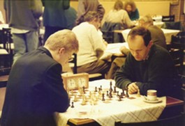 De foto boven in het midden is een partij waarin ik met zwart speel tegen Stephan Thijssen.