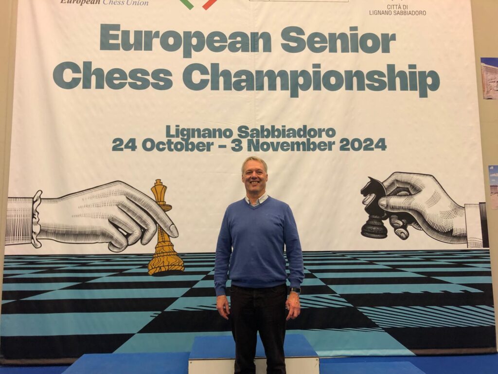 Onze voorzitter Luc Zimmermann heeft in het Europees Kampioenschap 65+ (van 24 oktober t/m 3 november in Lignano Sabbiadoro (Italië)) een verrassend goed resultaat behaald. Luc speelde een van zijn beste toernooien ooit en werd gedeeld 8e, midden tussen voormalige wereldtoppers als GM Lubomir Ftacnik en GM John Nunn.