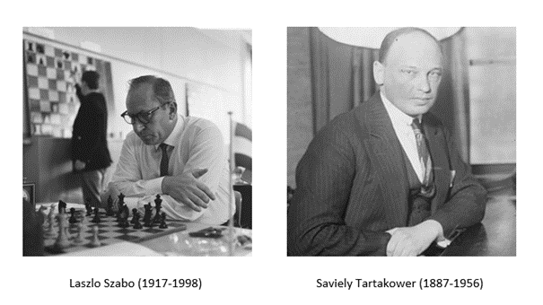 Szabo (1917-1998) en Tartakower (1887-1956), de genodigden voor mijn 12e verjaardag, zullen ongetwijfeld heel andere herinneringen aan WO2 hebben gehad. Van Tartakower heb ik kunnen achterhalen dat hij officier (luitenant) in het Franse leger onder Generaal De Gaulle was. Hij stond bekend om zijn schaakaforismen, zoals: