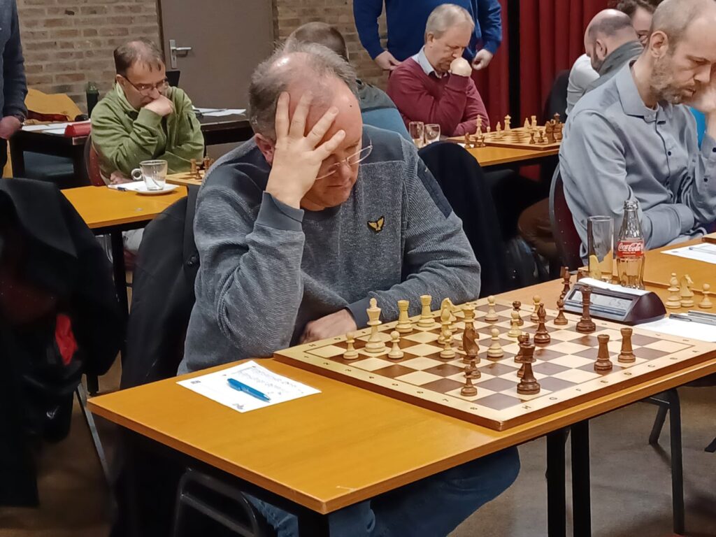 Wat later verloor ook Ynze (bord 6 met wit). Hij stond in de opening wel wat beter maar daarmee is het ook gezegd. Bij de overgang naar het middenspel ging het mis en ondanks dameruil kreeg zwart een sterke aanval die hij ook sterk voortzette. Pionwinst en activiteit leidde tot een eindspel met twee pionnen meer voor zwart en totaal gewonnen stelling. Overtuigend spel van Ynze’s tegenstander.