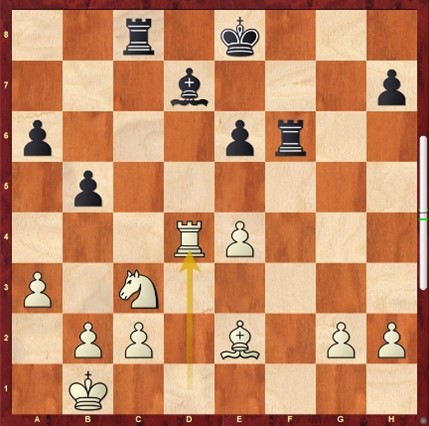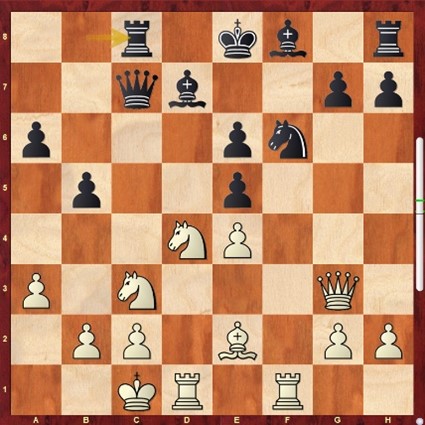Helaas is het tot de aanval met Dh3 en Ld3 zelf niet gekomen, want in tijdnood wordt er een Zwischenzug gemist met beslissende gevolgen. 2.5 – 1.5