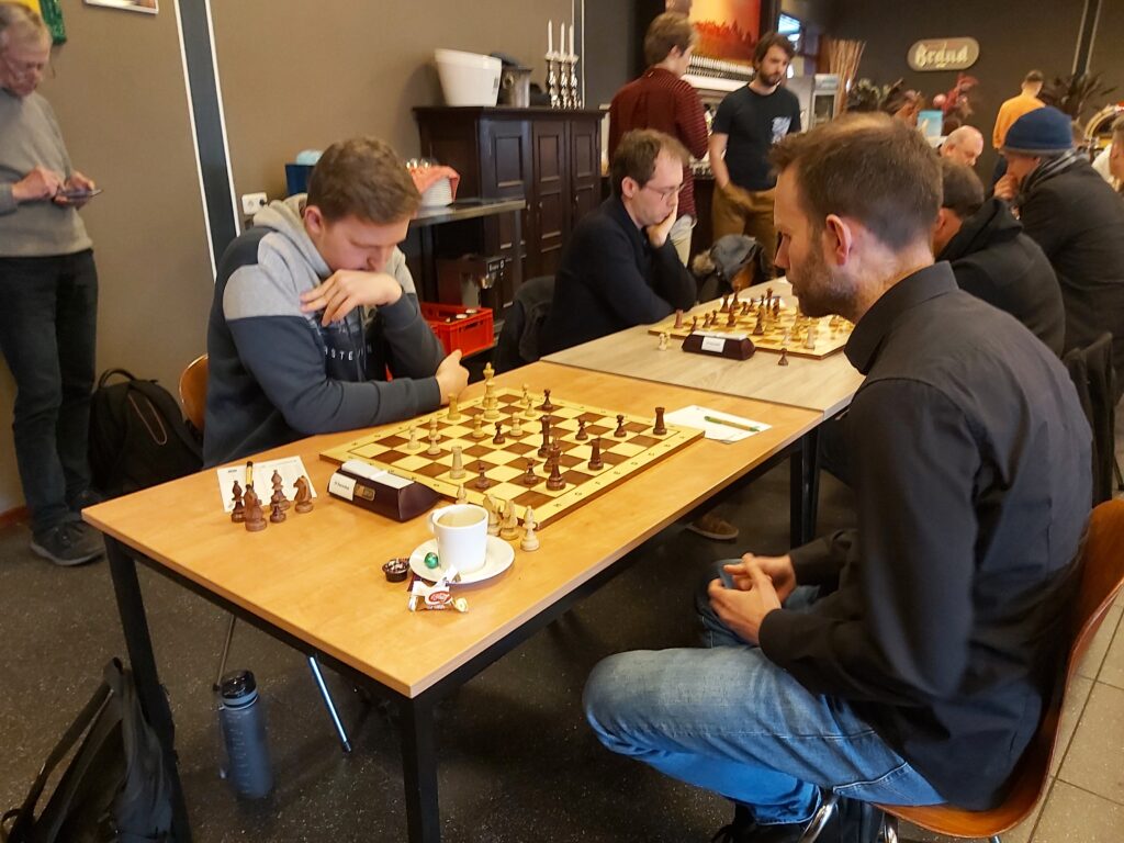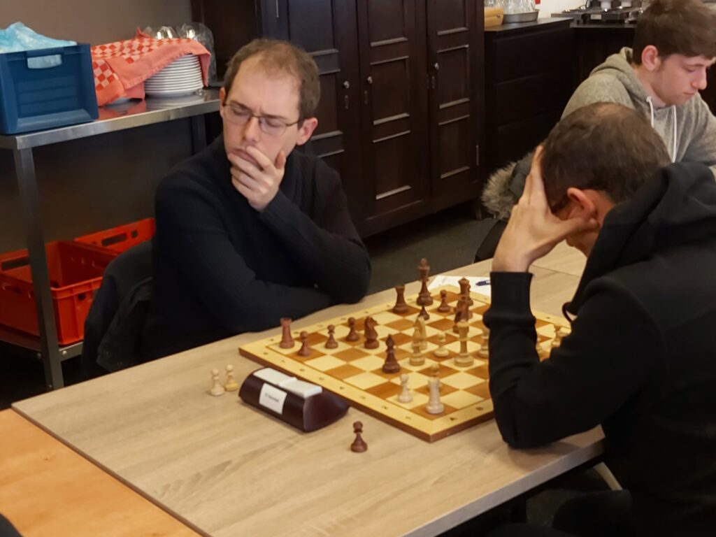 Met nog twee slechte borden zag het er toen zeker naar uit dat we zouden verliezen. Luca was de eerste die verloor. Na afloop gaf Luca aan dat zijn tegenstander erg goed gespeeld had en ik kan dit alleen maar bevestigen. Een goede en verdiende overwinning van Sjef Rijnaarts. (4-5)