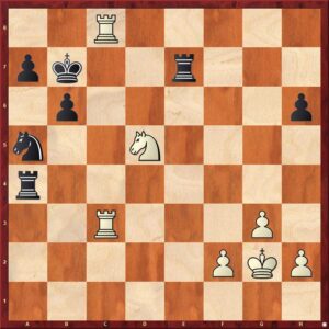 MarcelvH(2,w) solliciteerde met weer een fraaie koningsoverval én het binnenhalen van de matchpunten (5-0) nadrukkelijk naar “man of the match”! Maar dit keer niet, al was het alleen al omdat meerdere passanten, meerdere varianten aangaven die veel eerder tot winst zouden leiden. Marcel deed er iets langer over, maar toen stond de zwarte koning ook compleet in zijn hemd. Camiel(1,z) werd de schlemiel van de dag. Als enige speler verliezen?! En dat na een interessante zetten uitwisseling die volgens de analyse ook makkelijk in winst had kunnen(zelfs moeten) eindigen! Een strafexercitie naar Robbeneiland samen met Theo zal niet kunnen want de volgende wedstrijd (uit naar Hilversum) heeft het team hem hard nodig!