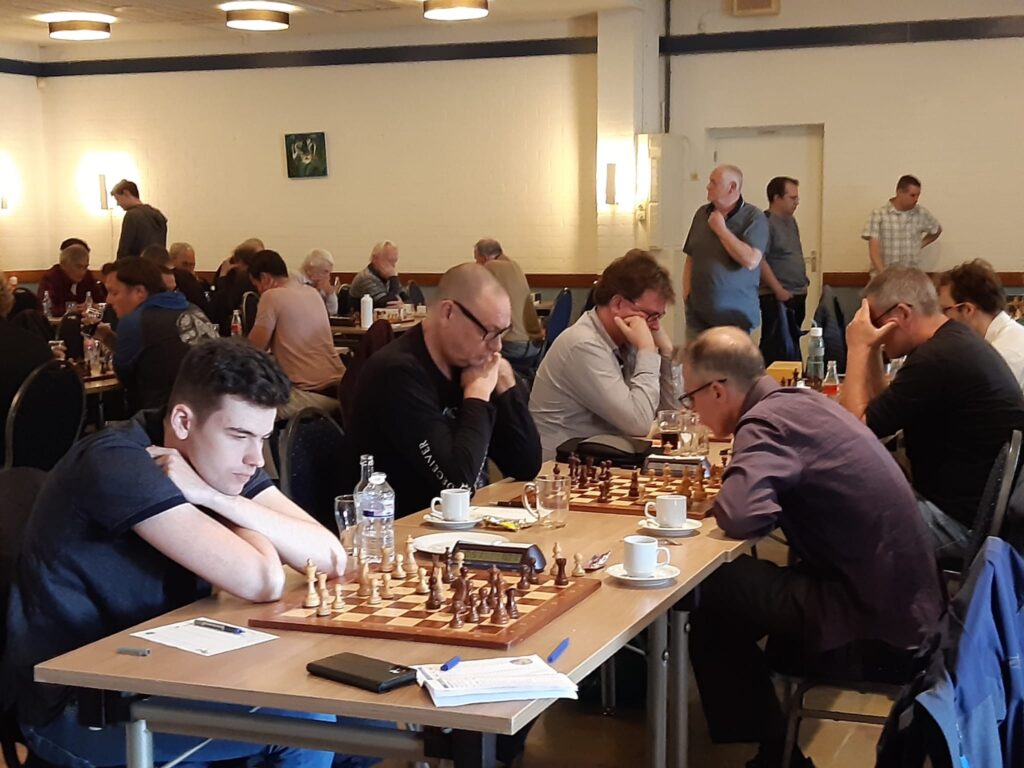 Terwijl Leon gefeliciteerd werd door zijn tegenstander, keek Tom naar Barry. Barry knikte meteen begripvol en bood direct remise aan, hetgeen zijn tegenstander onmiddellijk accepteerde en daarmee waren de 2 matchpunten voor ons: 2½-4½!