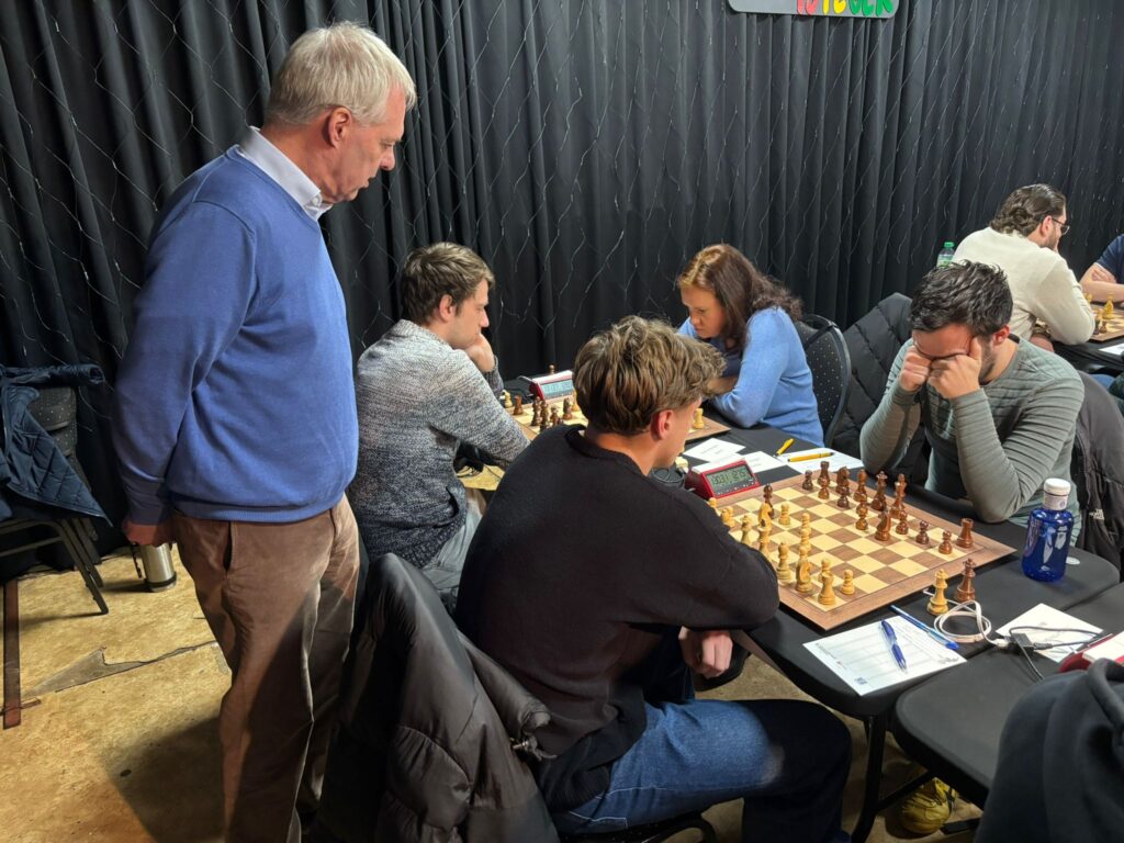 Onze twee grootmeesters speelden een vrij snelle remise vanuit een wat slechtere positie, zoals ze zelf aangeven in het interview. De tegenstanders misten wel wat kansen op voordeel, maar waren wellicht ook blij met een remise tegen de GM’s.