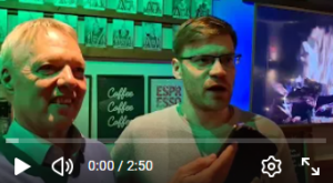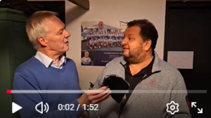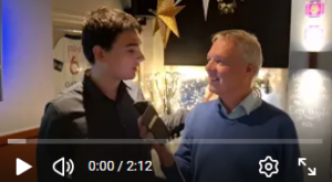 Omdat ook alle spelers van het eerste team bleven voor het buffet hadden Ynze (filmde) en ikzelf (interview en geluid) tussenin de tijd om vele spelers van het eerste team kort te interviewen met hoofdzakelijk twee vragen: “hoe ging je partij” en “vertel eens iets over jezelf”. Er kan nog veel verbeteren aan onze interviews maar met heel beperkte middelen (twee mobieltjes en geen rustige ruimte) geven ze toch al een mooie impressie. Als het goed lukt vind je de interviews en al mijn analyses van de partijen hieronder op de juiste plaatsen in het verslag. Ik ben zelf benieuwd hoe het uitpakt, maar als het geslaagd is, smaakt het naar meer (en beter).