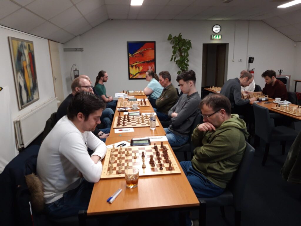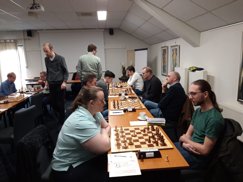 Door deze mooie 6-2-overwinning stegen we zelfs naar de 5e plaats! Op zaterdag 1 april staat alweer de volgende belangrijke wedstrijd voor de deur, thuis (in Stein) tegen Dubbelschaak ’97 1. Het team uit Boxtel staat nu 1 matchpunt onder ons, met een overwinning zouden we helemaal veilig kunen zijn. Maar het team uit Boxtel heeft de punten natuurlijk ook hard nodig, het zal een spannende wedstrijd worden!