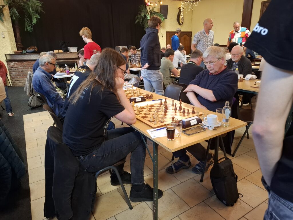 Mijn tegenstander deed per ongeluk in een nog spannende stelling een stuk kado. Daardoor was het snel 3-0 met op de andere borden op het eerste gezicht nergens een echt slechte stelling. Uiteindelijk werd het 7-1, de grootste uitslag van het seizoen.